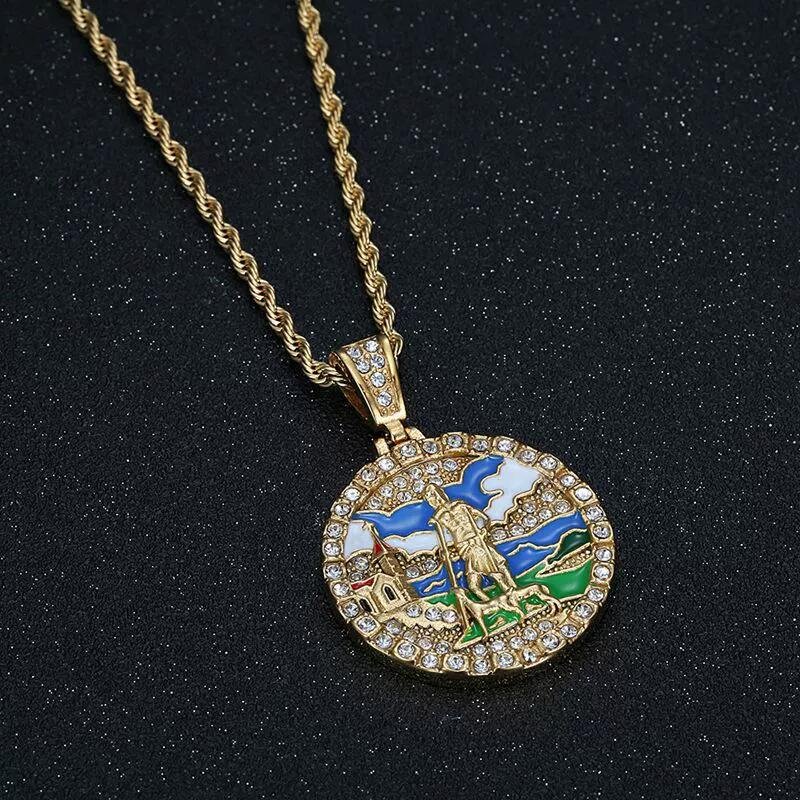 Christian Gold Jesus Plaque Silicon Carbide Pendant Men’s Jesus Face Pendant